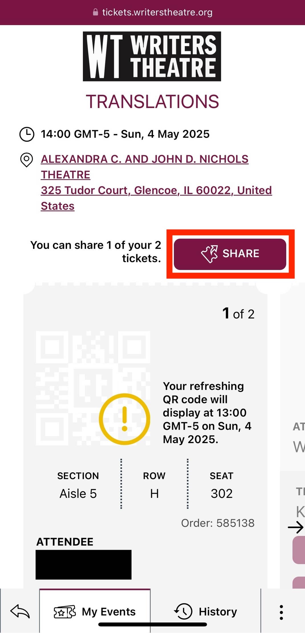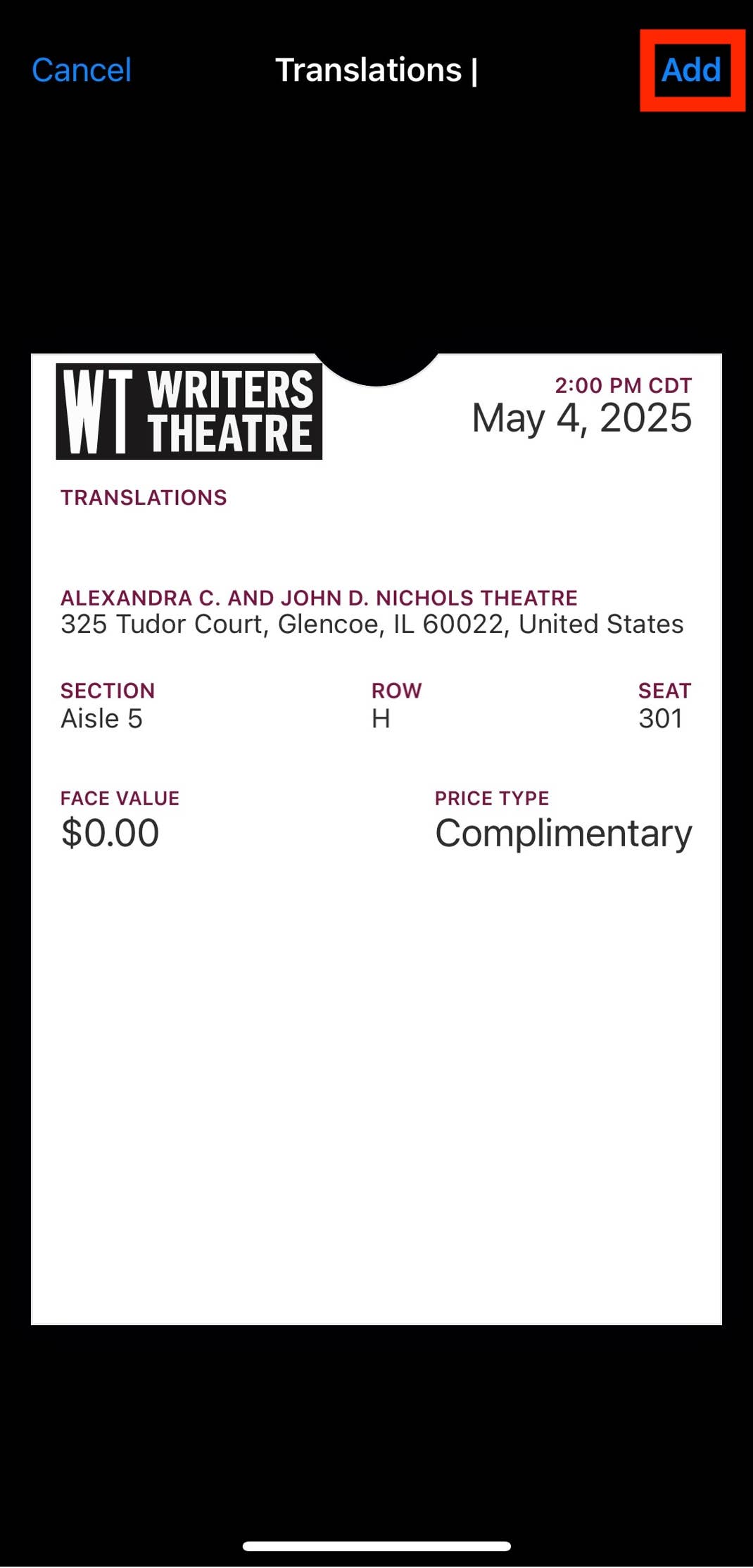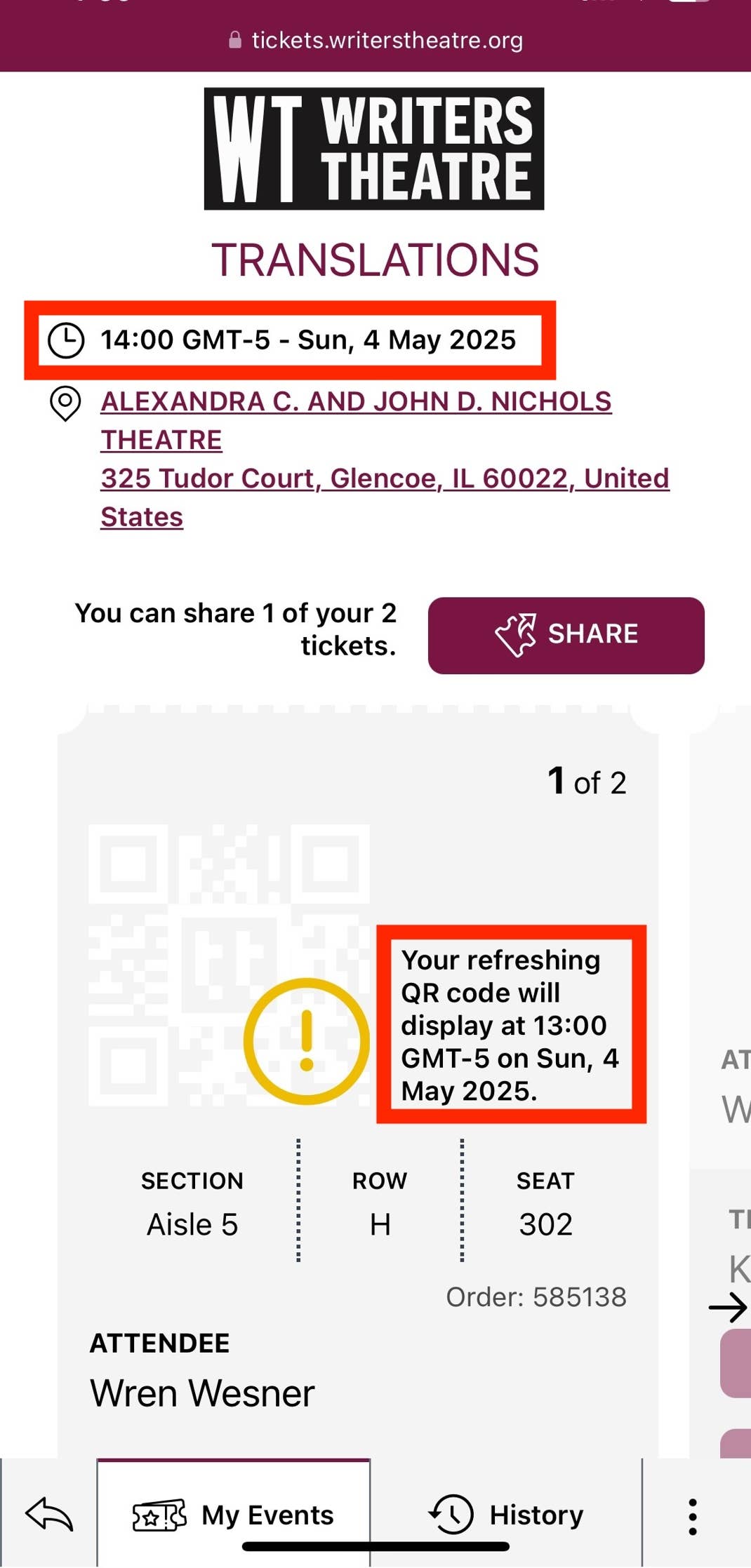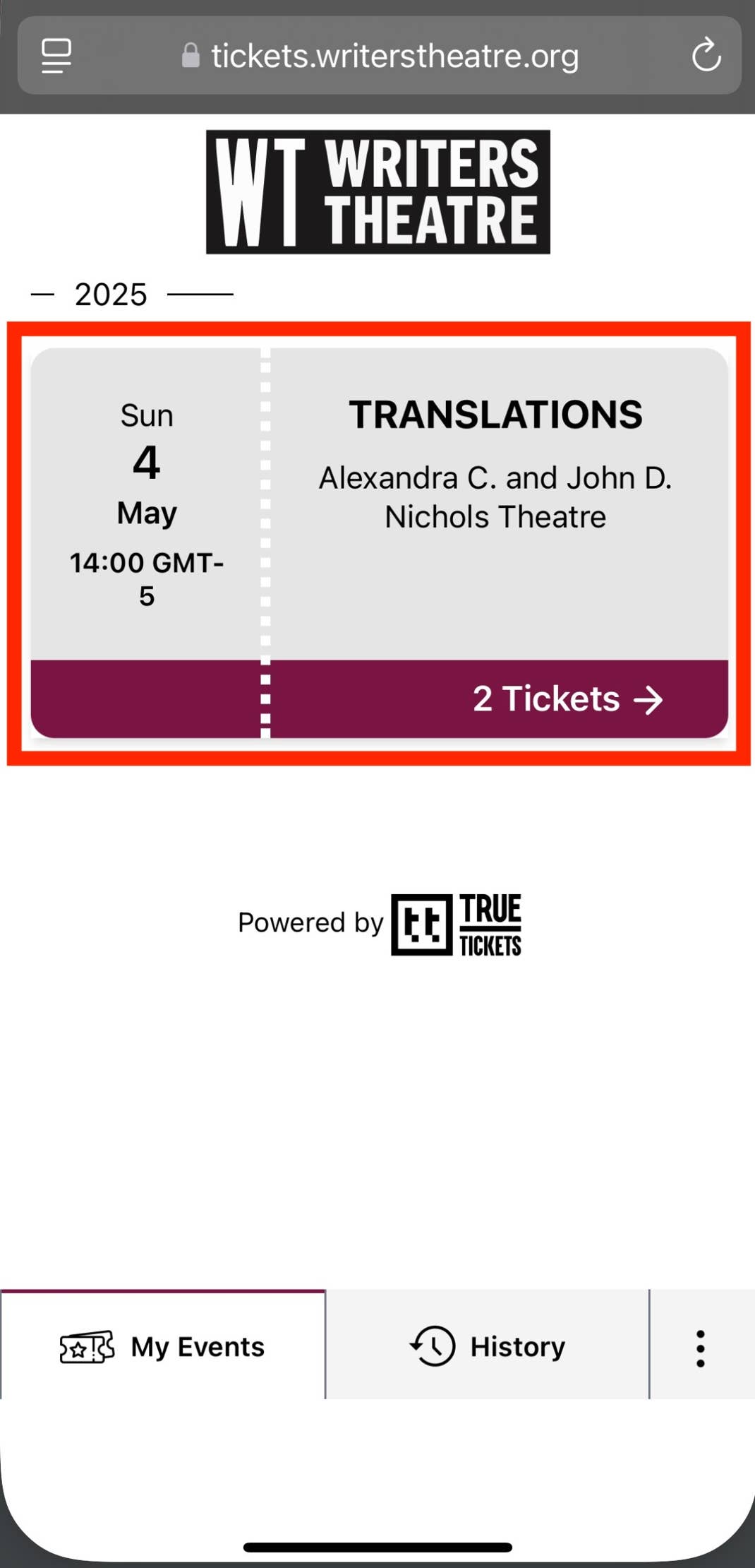 Writers Theatre is excited to introduce an improved digital ticket experience. If you opted to receive digital tickets for your upcoming performance, please see the instructions below on how to access and share them!