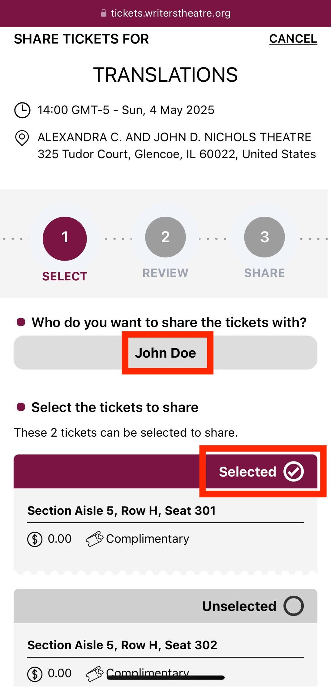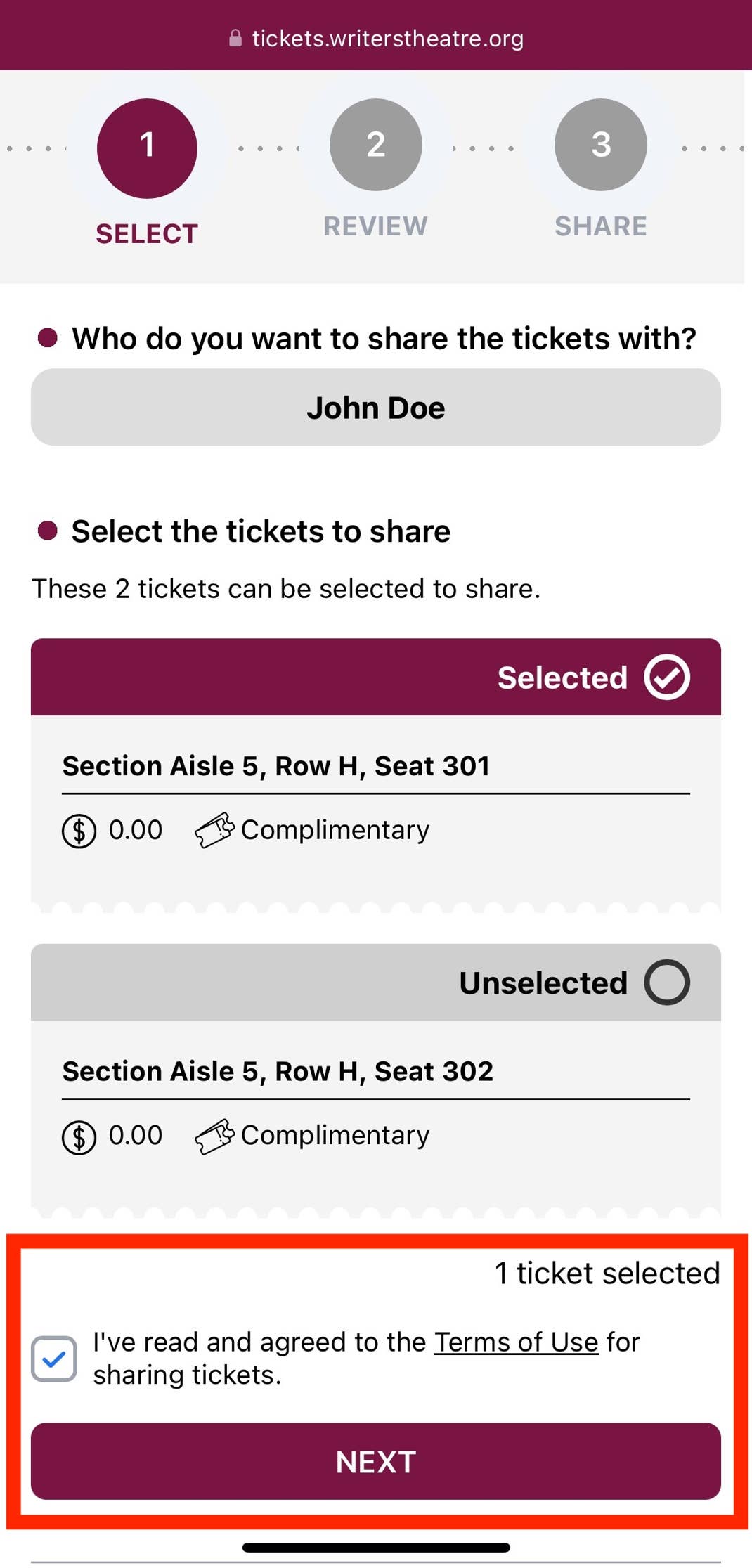 - Select the ticket(s) you’d like to share.