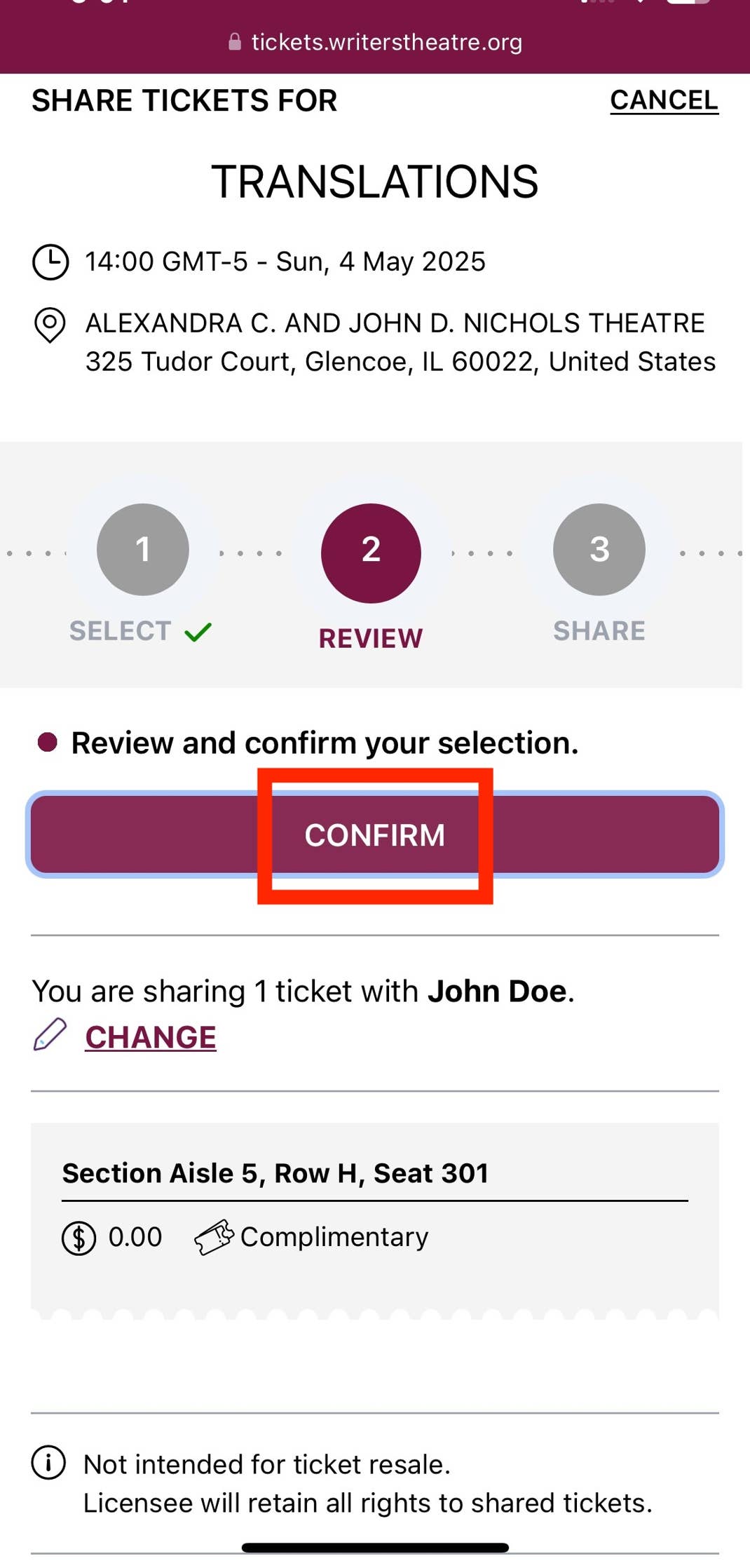 YES! They must log in to claim the tickets you’ve shared with your guests. If they already have a ticketing account with Writers Theatre, they may use the same email address associated with their account to log in. If they do not have an account, they must create one to accept the tickets.