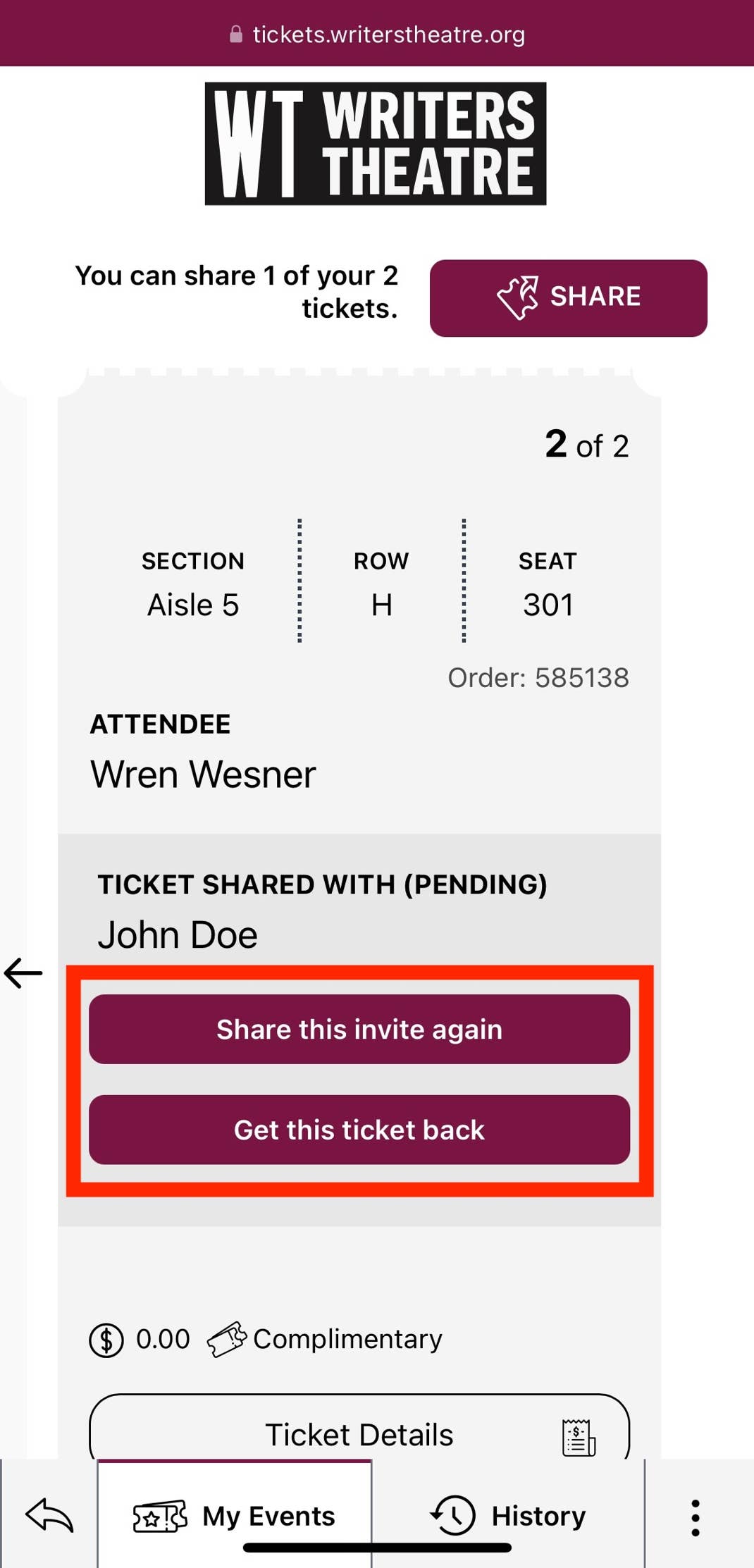 - You may also “Share the invite again” or “Get this ticket back” in your wallet.